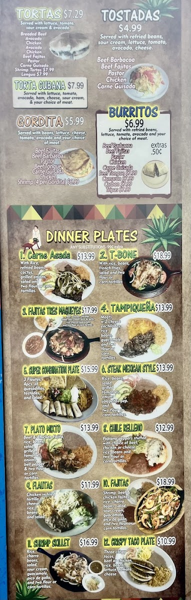 Welcome to Tres Magueyes 1, where every dish tells a flavorful story that beckons you to indulge in the authentic taste of Mexico! Located at 518 N 3rd St, Temple, TX, our menu is a delightful showcase of culinary artistry, featuring mouthwatering specialties like our hearty Burritos and vibrant Enchiladas Verdes, alongside the beloved Huevos Rancheros that make breakfast a fiesta! Don’t miss out on our sizzling Beef and Chicken Fajitas Mix or the comforting Chile Poblano. For those craving a taste of tradition, our Taco Enchilada Plate and delectable Flautas De Pollo are sure to hit the spot. Pair your meal with our fresh Chips and Salsa or enjoy a bowl of our flavorful Pumpkin Soup. No matter what you choose, we invite you to savor the rich flavors and vibrant experiences that define our menu at Tres Magueyes 1. Join us for an unforgettable meal that feels like a true celebration!